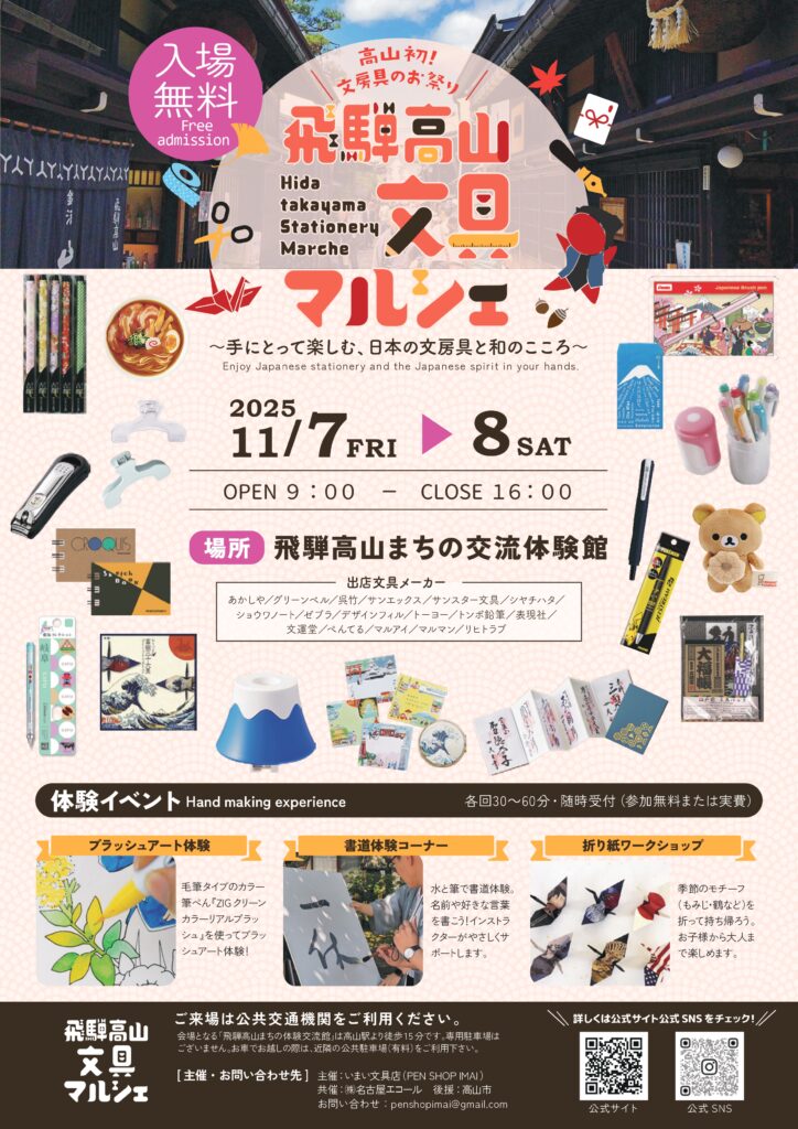 飛騨高山文具マルシェを開催いたします! 文具メーカーさんがたくさん集まり、人気商品や新商品を購入することができます😊