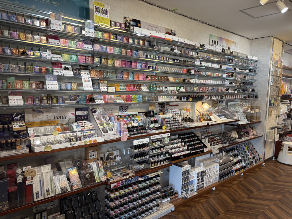 色とりどりのカラーペンやボトルインク、スケッチブック等をたくさん集めたお店です🎨